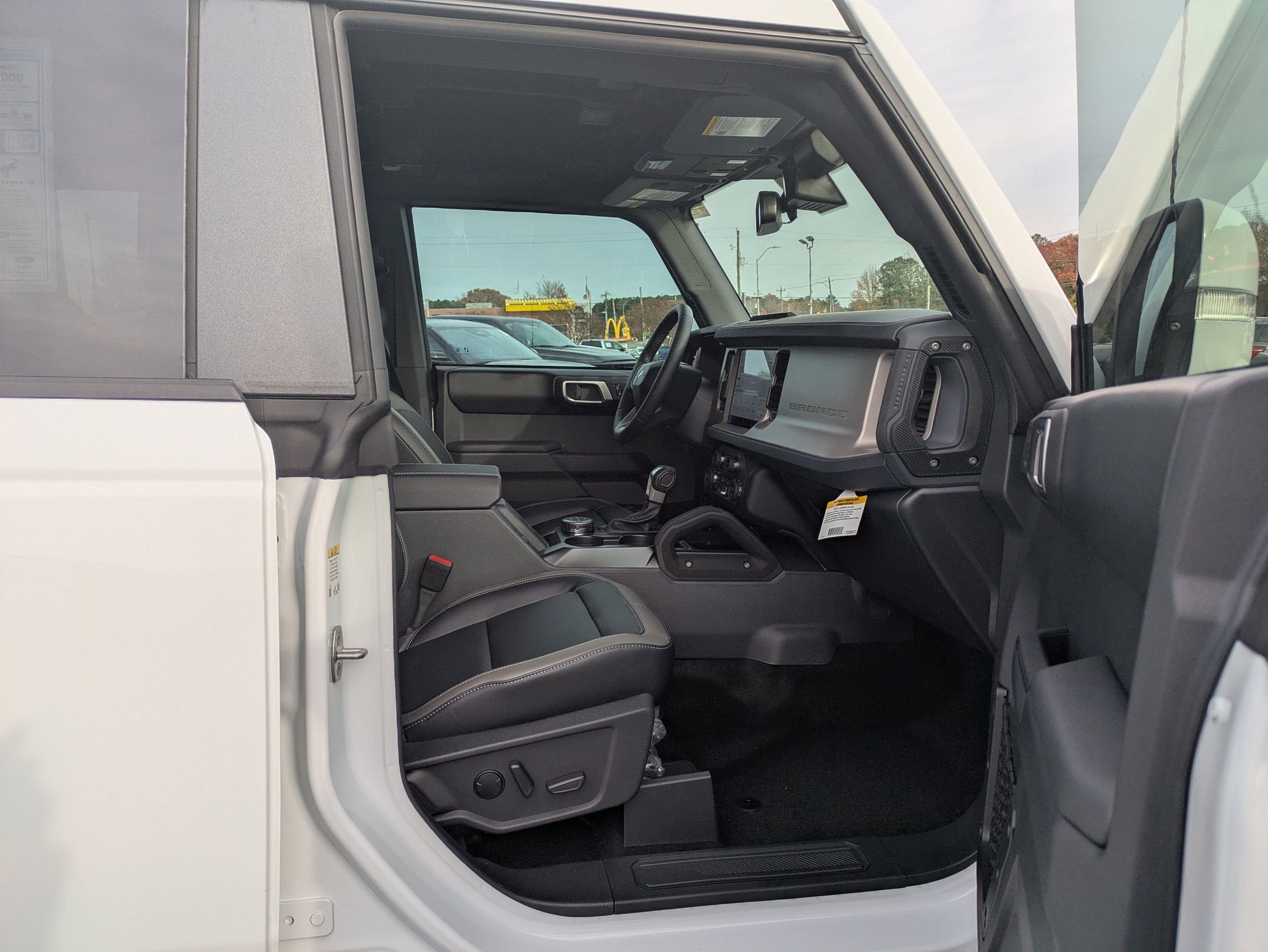 2025 Ford Outer Banks Bronco 18" Bright Machined Aluminum Wheels, 360-Degree Camera, 4-Wheel Disc Brakes, 7 Speakers, ABS brakes, Adaptive Cruise Control, Air Conditioning, Alloy wheels, AM/FM radio: SiriusXM with 360L, AM/FM Stereo, Auto High-beam Headlights, Auto-dimming Rear-View mirror, Automatic temperature control, Brake assist, Compass, Connected Navigation, Delay-off headlights, Driver door bin, Driver vanity mirror, Dual front impact airbags, Dual front side impact airbags, Electronic Stability Control, Emergency communication system: 911 Assist, Equipment Group 314A Lux Package, Evasive Steering Assist, Exterior Parking Camera Rear, Front & Rear Floor Liners w/o Carpet Floor Mats, Front anti-roll bar, Front Bucket Seats, Front Center Armrest, Front dual zone A/C, Front fog lights, Front License Plate Bracket, Front Parking Sensors, Front reading lights, Front wheel independent suspension, Fully automatic headlights, Hard Top Sound Deadening Headliner, Heated door mirrors, Heated front seats, Heated Leather-Trimmed/Vinyl Bucket Seats, Heated steering wheel, High Clearance Fender Flares, High Clearance Suspension, Illuminated entry, Information on Demand Panel, Integrated roll-over protection, Internet access capable: FordPass Connect, Leather Shift Knob, Low tire pressure warning, Navigation system: Connected Navigation, Occupant sensing airbag, Outside temperature display, Overhead airbag, Overhead console, Painted Hard Top, Panic alarm, Passenger door bin, Passenger vanity mirror, Position-Sensitive Bilstein Shock Absorbers, Power door mirrors, Power driver seat, Power passenger seat, Power steering, Power windows, Radio data system, Radio: B&O Sound System by Bang & Olufsen, Rear seat center armrest, Rear-Window Defroster & Washer, Remote keyless entry, Sasquatch Package, Security system, Sideview Mirrors, SiriusXM w/360L, Speed control, Split folding rear seat, Steering wheel mounted audio controls, SYNC 4, Tachometer, Telescoping steering wheel, Tilt steering wheel, Traction control, Trip computer, Universal Garage Door Opener, Variably intermittent wipers, Voltmeter, Wheels: 17" Carbonized Gray Painted Aluminum.