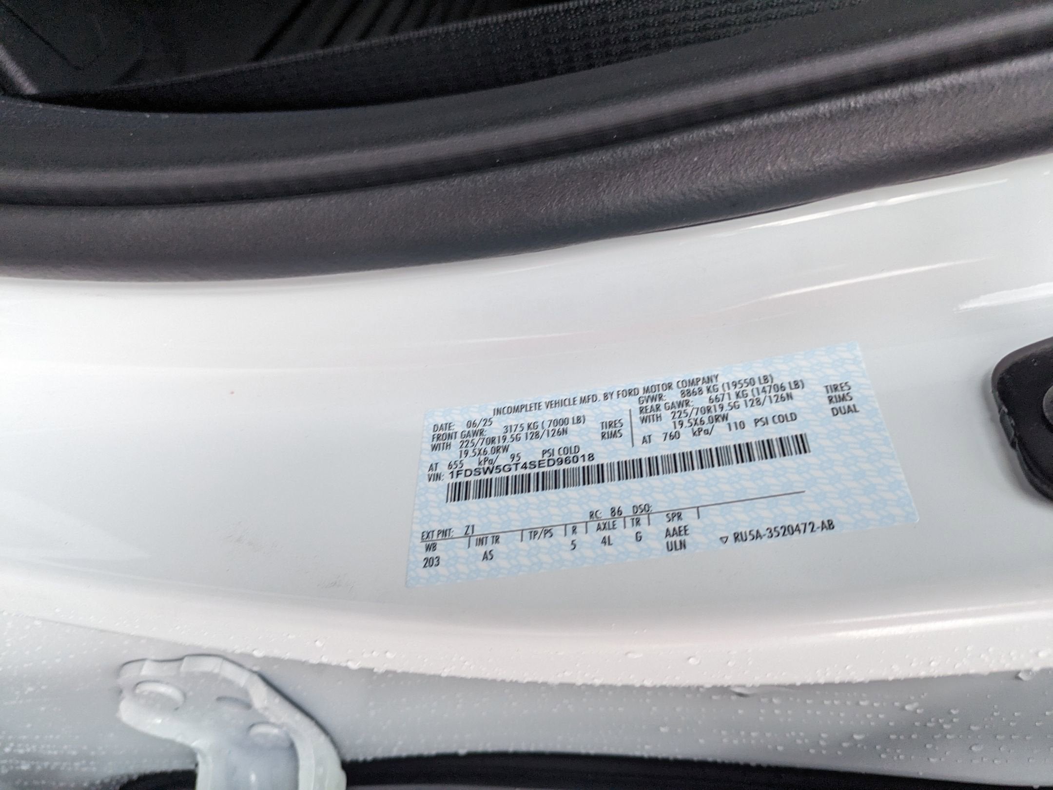 - Front Tire Size: LT225/70SR19.5