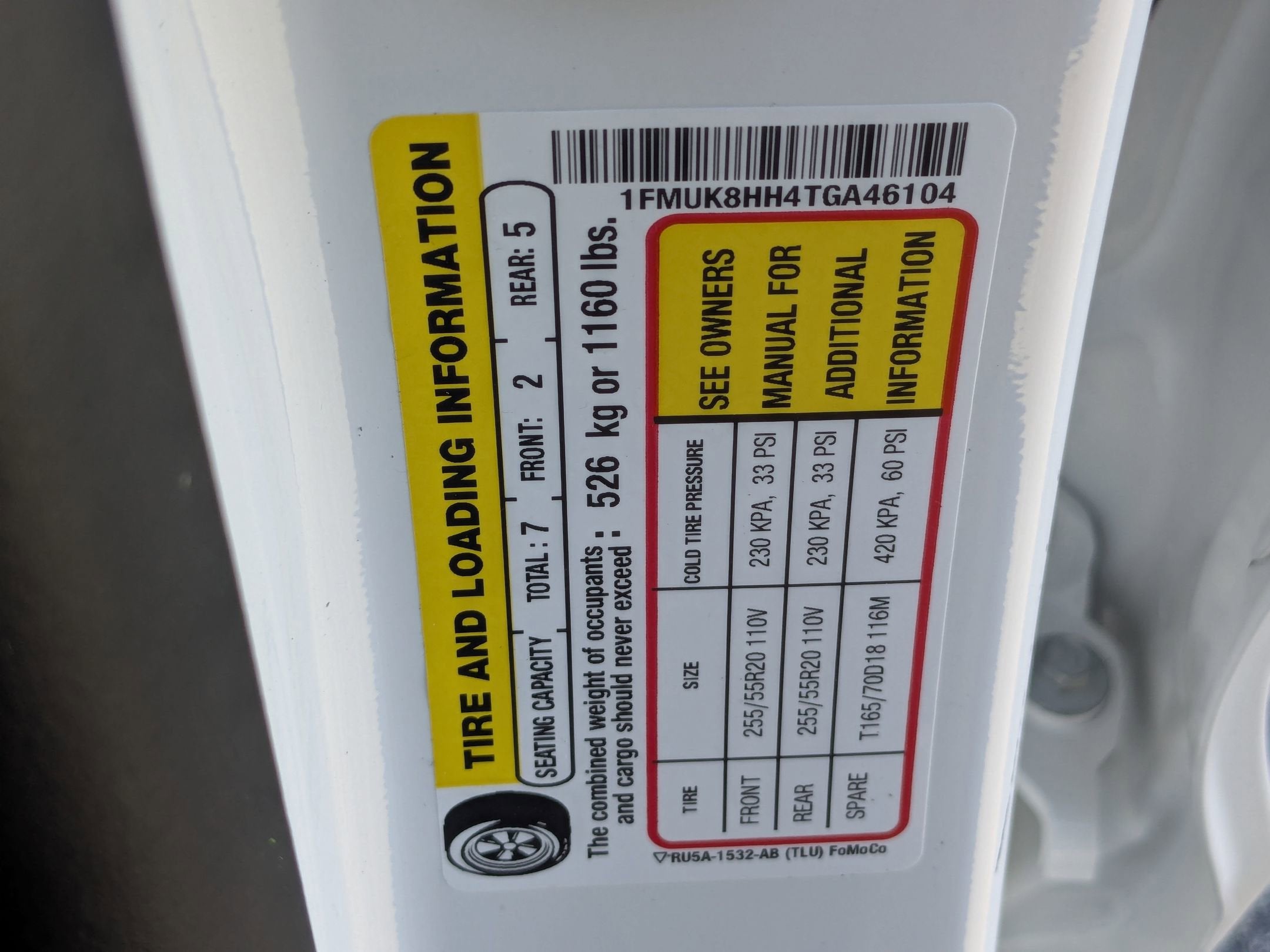 - Front Tire Size: P255/55VR20