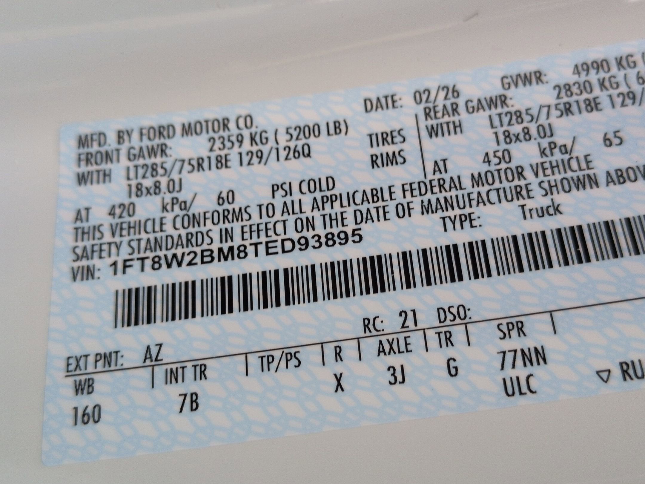 - Front Tire Size: LT275/65SR20